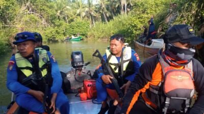 Tim Rescue Harita Nickel melakukan proses pencarian Korban Banjir Bandang, Kelurahan Rua, Kota Ternate.