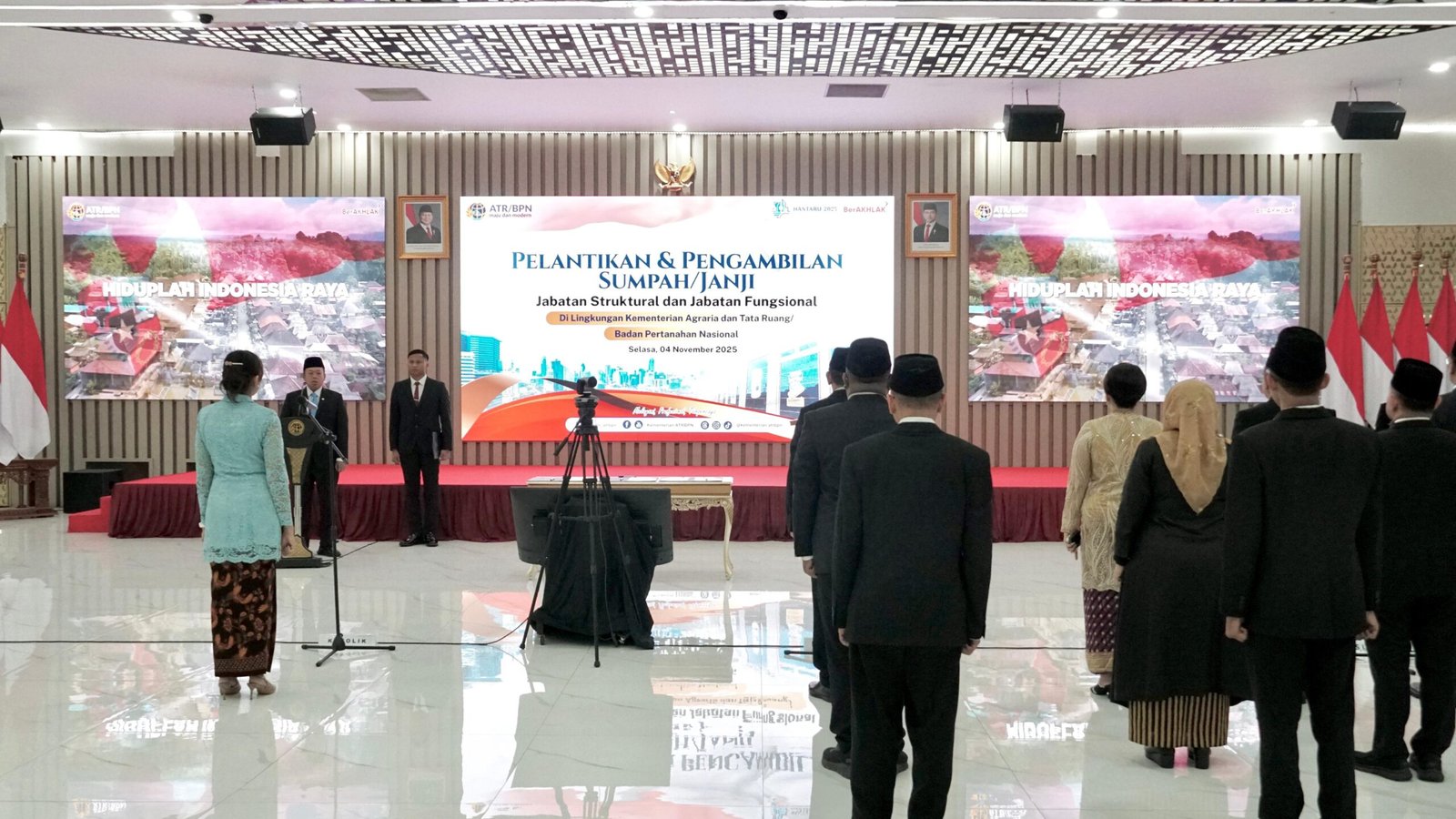 Pelantikan ini jadi momentum bagi seluruh pejabat di lingkungan Kementerian ATR/BPN untuk memperkuat komitmen dalam menjalankan tugas dengan penuh integritas dan profesionalisme. Pelantikan berlangsung secara daring dan luring dengan dihadiri oleh sejumlah Pejabat Pimpinan Tinggi Madya serta Pratama Kementerian ATR/BPN dan jajaran. (GE/RT/FA)